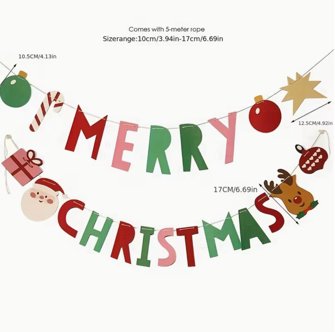 Banderín Merry Christmas de cartón decorativo para navidad.