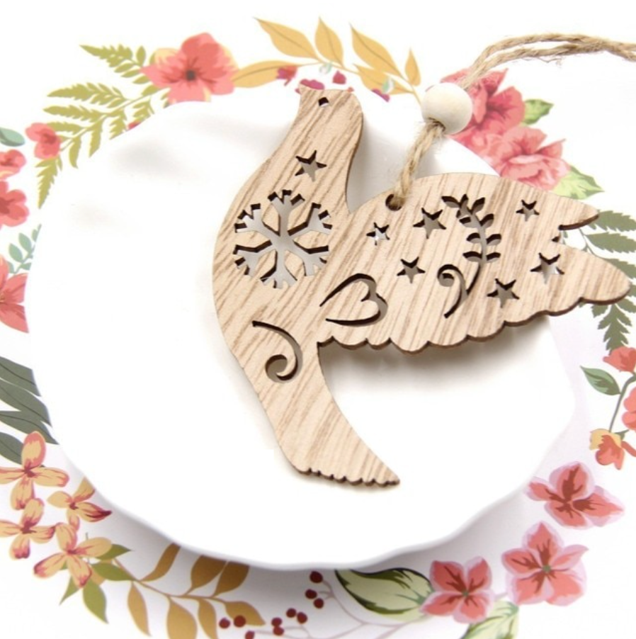 5 espíritu santo decorativos de madera tallada para colgar en tus eventos.
