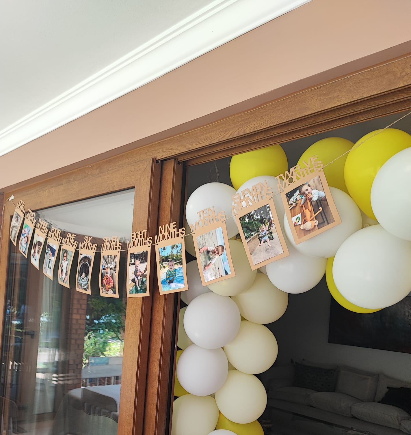 Guirnalda de cartón kraft para poner fotos de los primeros 12 meses de tu hijo.