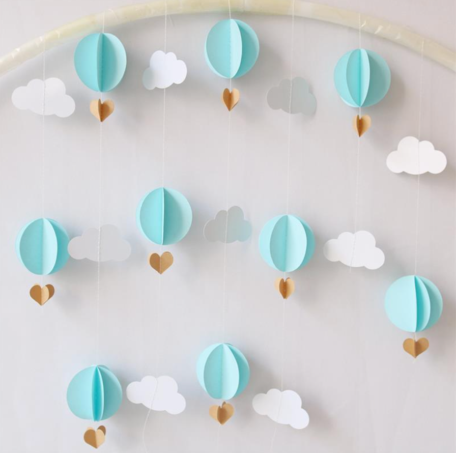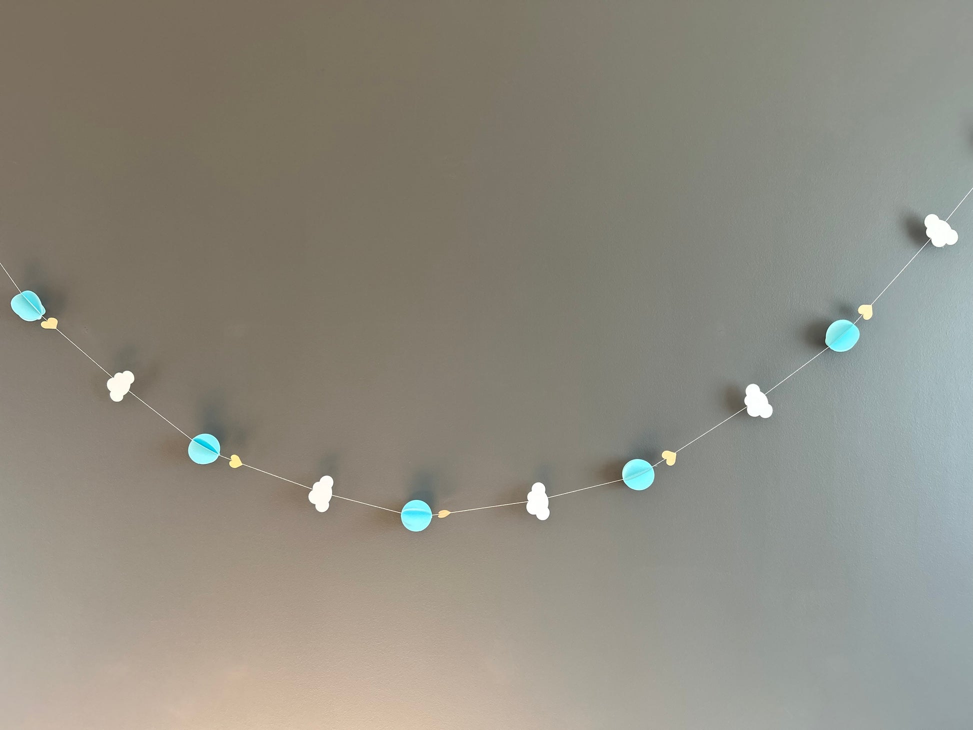 Guirnalda de 3 metros decorativa globos aerostáticos y nubes.