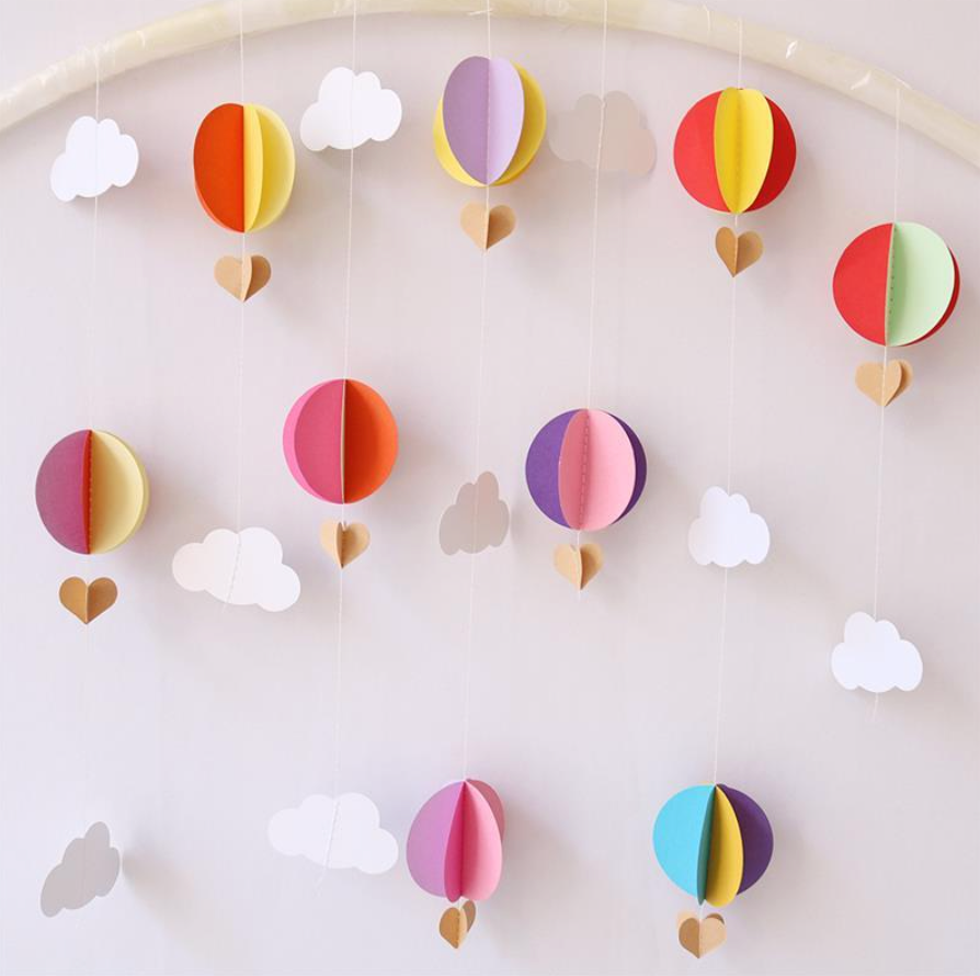 Guirnalda de 3 metros decorativa globos aerostáticos y nubes.
