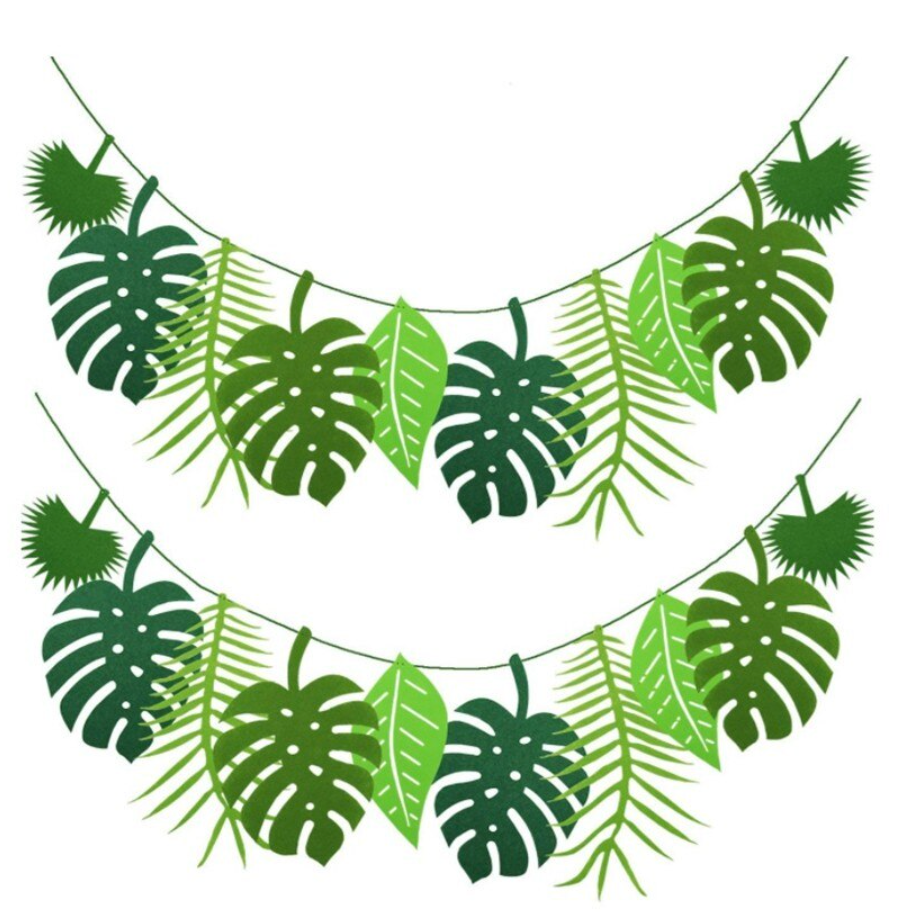 Guirnalda de paño lenci de 10 hojas de la selva tonalidades verdes.