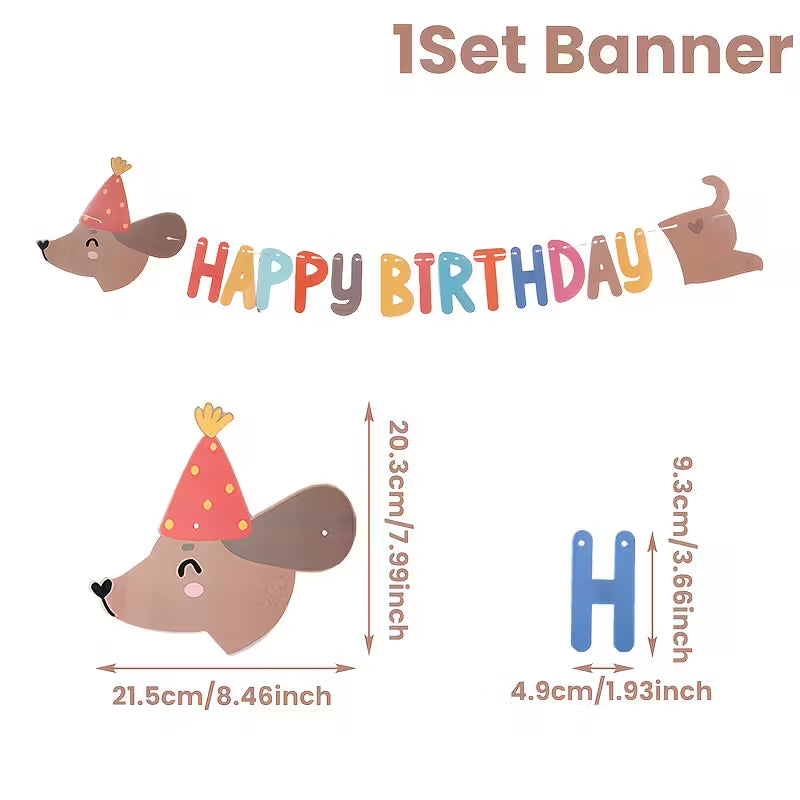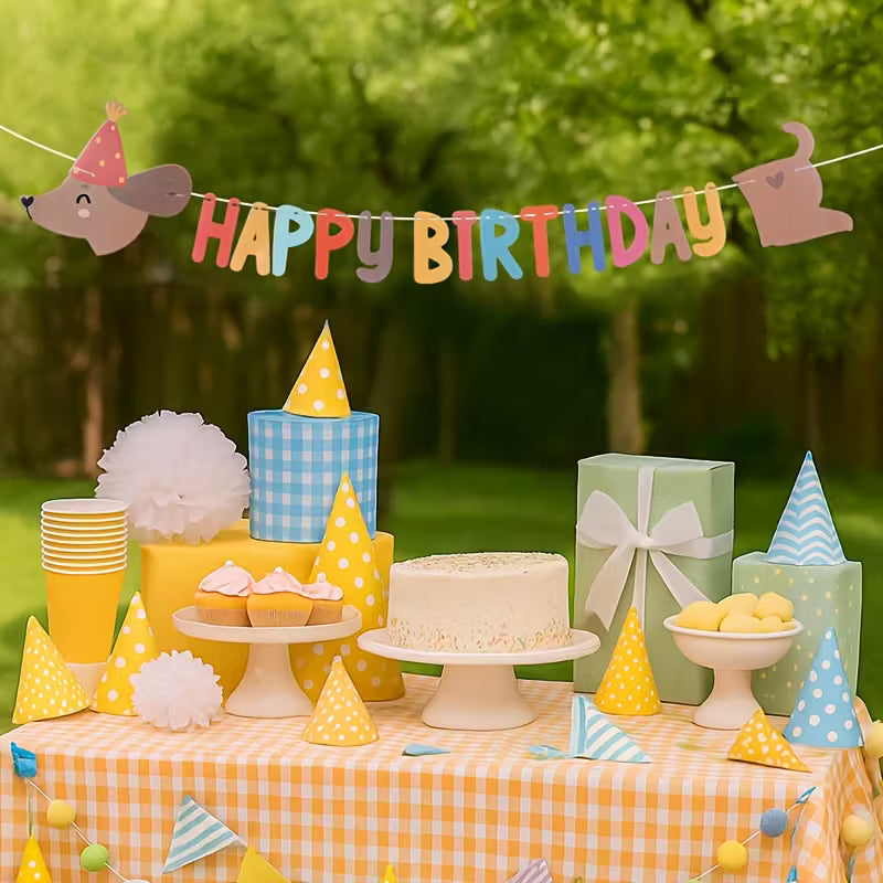 Guirnalda happy birthday perrito salchicha de cartón.
