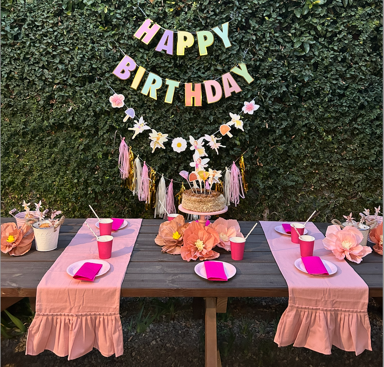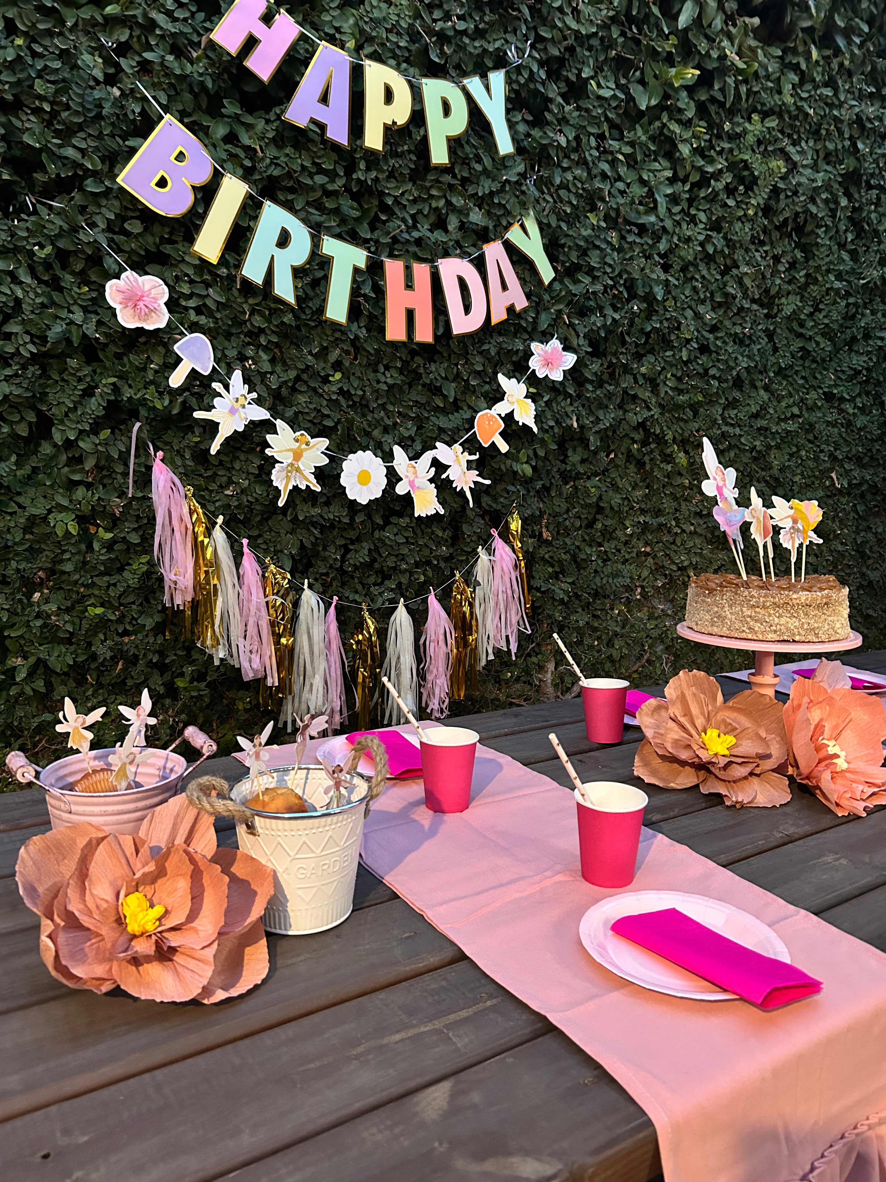 Un pack de decoración personalizado con temática de hadas que transforma cualquier rincón de tu casa en una celebración mágica. Ideal para cumpleaños de niñas entre 1 y 7 años.