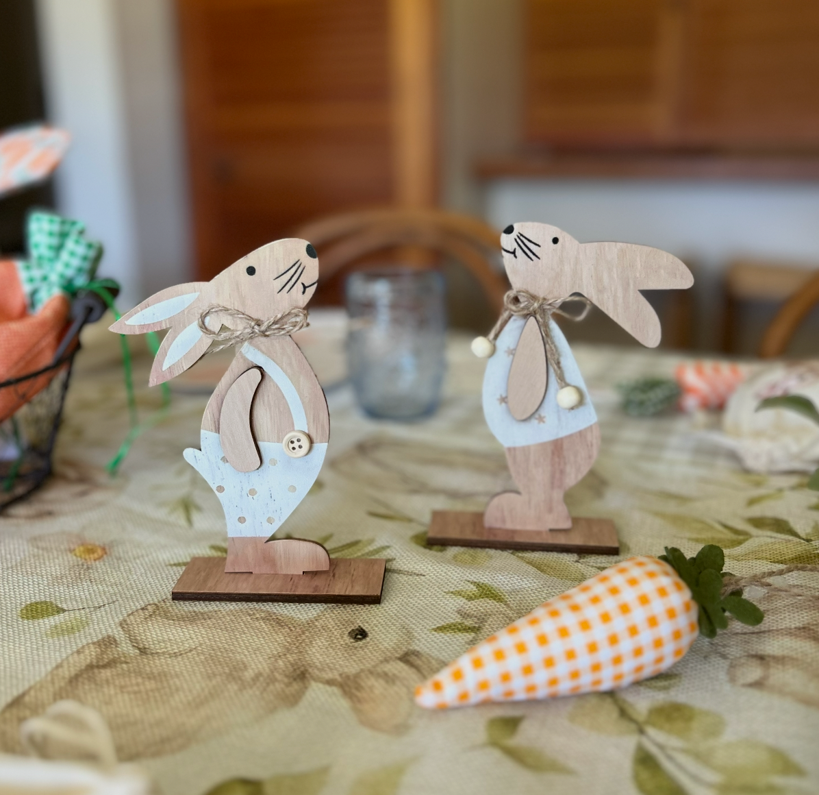 2 conejitos de madera con base.